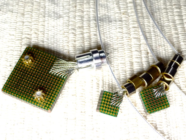 小さいのが10mm角くらい。 ガラスエポキシ基板は、磨くととても綺麗。