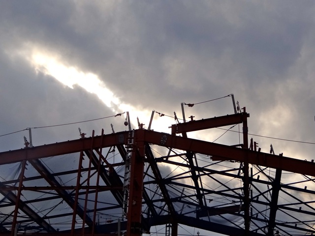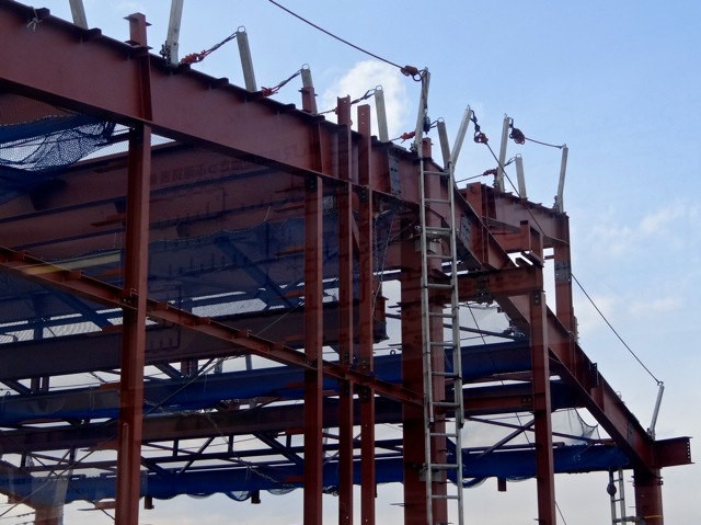 牛浜駅の工事、急に鉄骨が現れた。 外観が想像できる、大きさやその形。