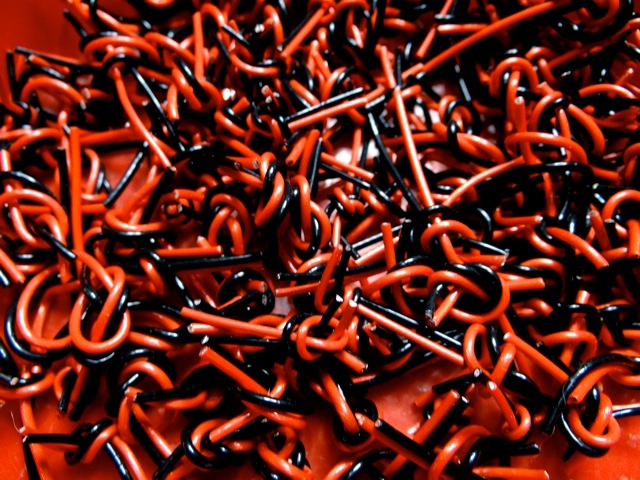 その一部を作った。 電線を切って、それらを撚り合わせる。 そして配線に使う。