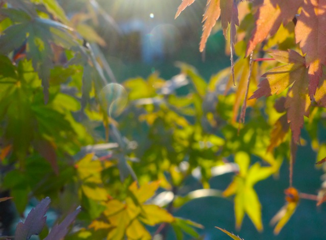 鉢植えのイロハモミジが夕日を浴びて輝いていた、そして、すぐにその光りも消えた。