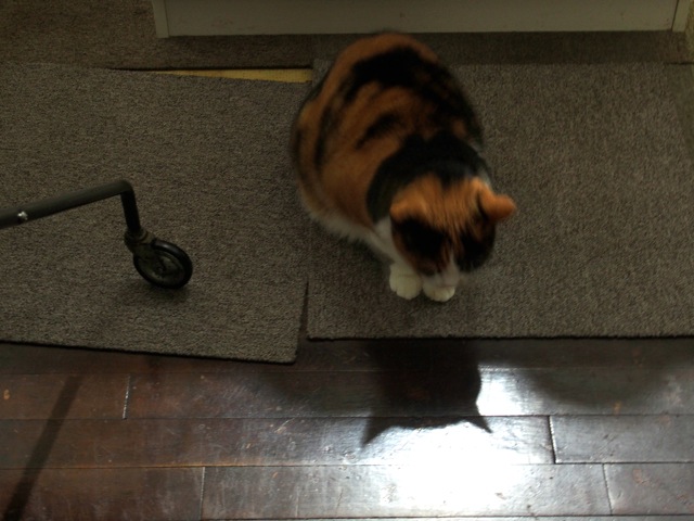 アミのことは、いつも寝てばかりと報告することが多いけれど、たまには動く。ご飯も食べるし、トイレにも行く。 見回りもする。