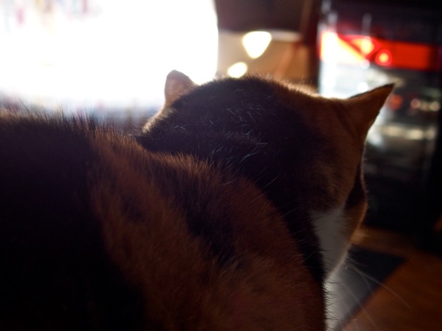 完璧なママスキーなので、アミはママの膝に乗る。 そして眠る。でも、100回に1回くらい、パパの膝に乗ることもある。勘違いして間違えたような態度のときもあった、「dehehe」って感じ。でも、来たくてきたんだよぉ〜、みたいなときもある。カメラが手元にあったので、珍しい膝ネコさんを撮ってみた。