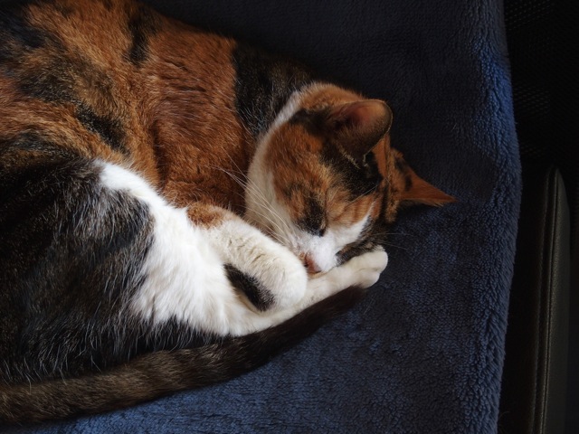 寝子の仕事は寝ること。 いつも寝ている、朝も昼も夜も。アミがひとりで留守番、というときもある。クルマで帰って来ると、玄関で待っていることがある。待っていたのか、偶然なのか、他の用事なのか、そこはわからない、でも、ドアの外で見掛けると、それは嬉しいこと。気配が無くて、家に入るとしっかり寝ているのを見つけることもある。それはそれで安心安心。