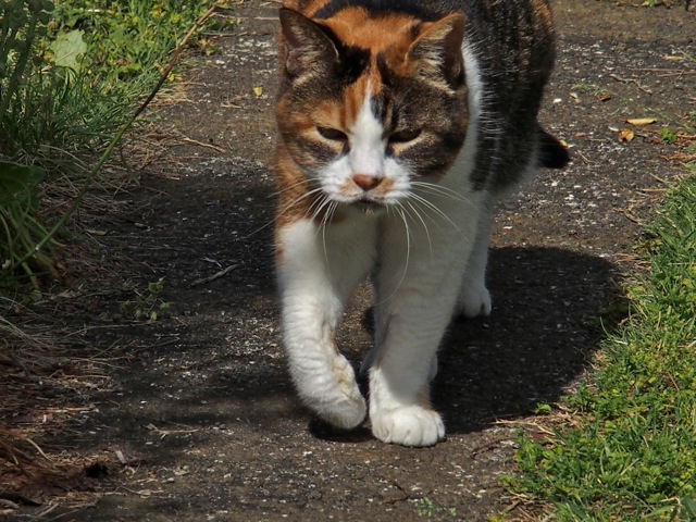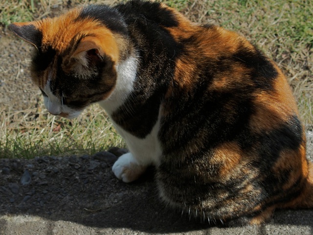 庭で遊んで、玄関まで戻ってきた。ちょっと目を離していると・・・、玄関に置いた段ボール箱に入り込んでいた。座れば牡丹じゃないけれど、「牡丹の箱の中で座っていた」。