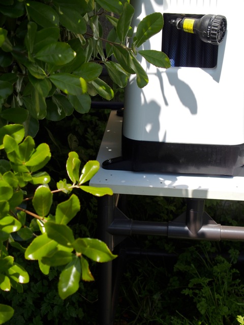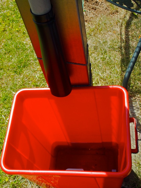 天水桶も浅いコンテナから、深いものに換えた。 雨樋を短く切って対応。