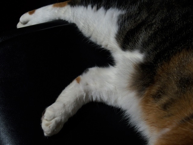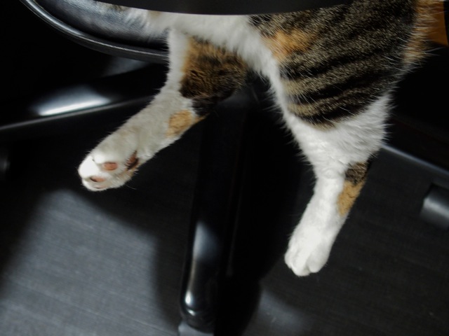 おみあし、と読むのよ。この世には、もっと痩せてて、スラッとした脚の猫がいることは知っている。そうは言っても仕方ない。 アミは丸い猫なのだ。若い頃は痩せていたと思うけれど、病院でも、アミちゃんちょっと痩せましょうねぇ、と言われた。でも、それから十年以上の時が流れた。
