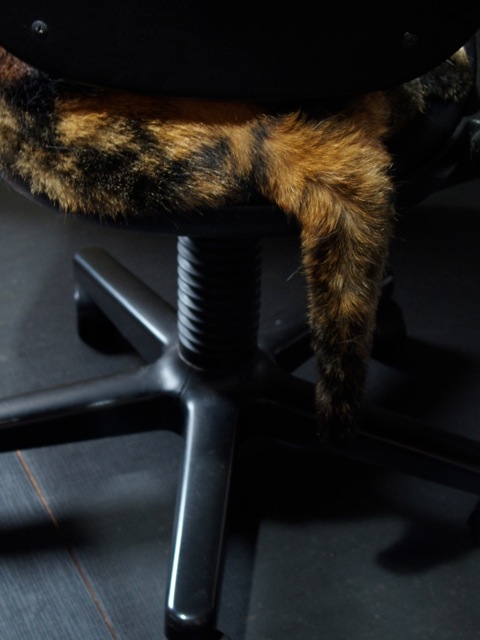 猫の尻尾はとても大事なものらしいけれど、中にはボブテイルという短い尻尾のネコもいる。アミの尻尾は殆ど真っ直ぐだけれど、ちょっと太くて短め?先っぽは薄く白い。 バランスを取ったり、意思表示にも使われる。