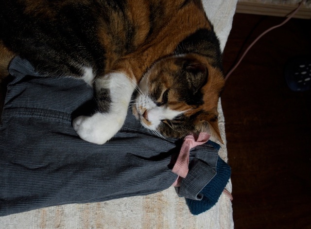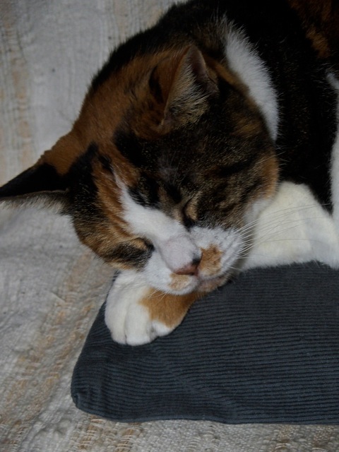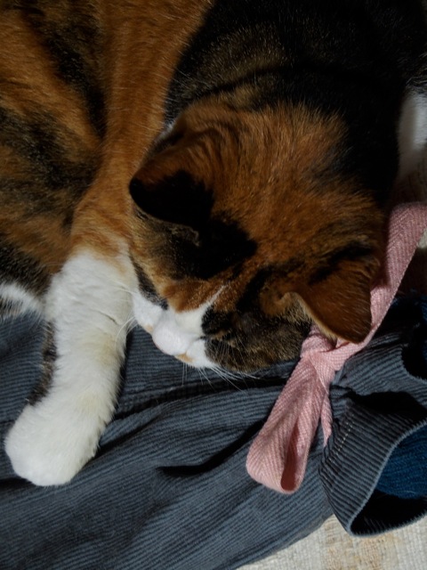 人は着るもので調節出来るけれど、ネコはそうはいかない。寝るのが仕事、いい子で寝ていたけれど、ちょっと寒過ぎるよね。ということで、アミの行火を用意してやった。これが、ちゃんと覚えてるんだよね。 用意してやったら、しがみついていた。