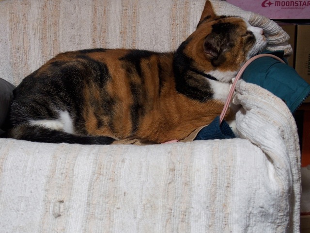 ネコは枕が好きみたい。 でもでも、それでは高過ぎない?枕を高くして寝られると思ってるなら、それはそれで嬉しいことでもあるけれど。見てるのは可愛いい、でも、それ、辛くない?