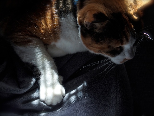 冬は太陽が低い、だから寒い。でも、家の中に光が届いてくる。思いがけないところまでやって来る。ネコは日射しを受けて寝る。