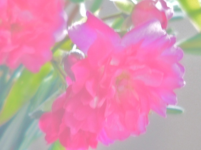 朝起きて食卓に着くと、食卓に花が。裏庭で摘んだそう。 薔薇の一種だろうということになっている。ローズマリーと共に、ソーダの瓶に挿してあった。