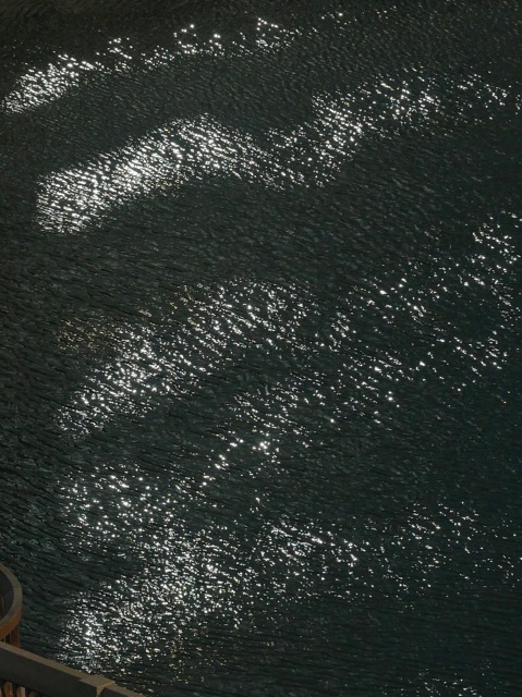 夜、ホテルに帰って、翌日、朝起きたら、部屋の窓から川面に朝日の反射が見えていた。
