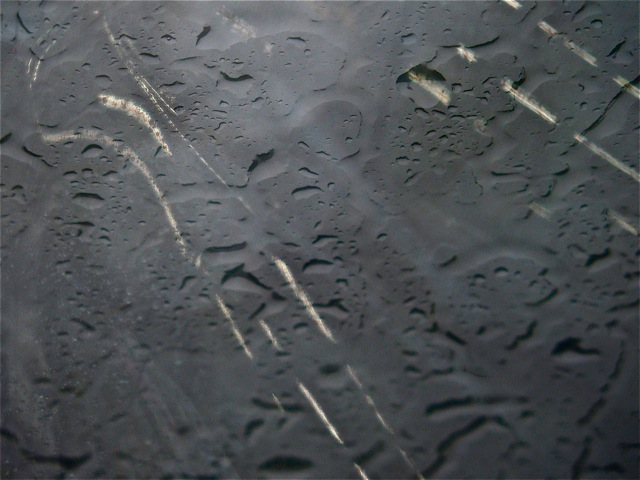 ただ待っていても仕方ないので、前面のガラスに叩き付けられる雨粒を撮った。シートに座って、正面を撮るだけ。 ややつまらないので、二重露光に切り替えた。羊さんと同じ、練習しといて良かった〜、ってことに。