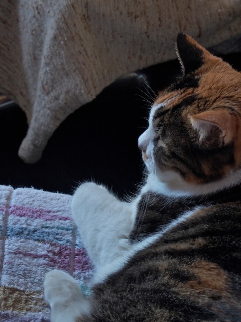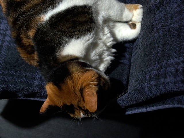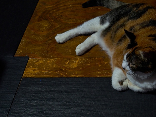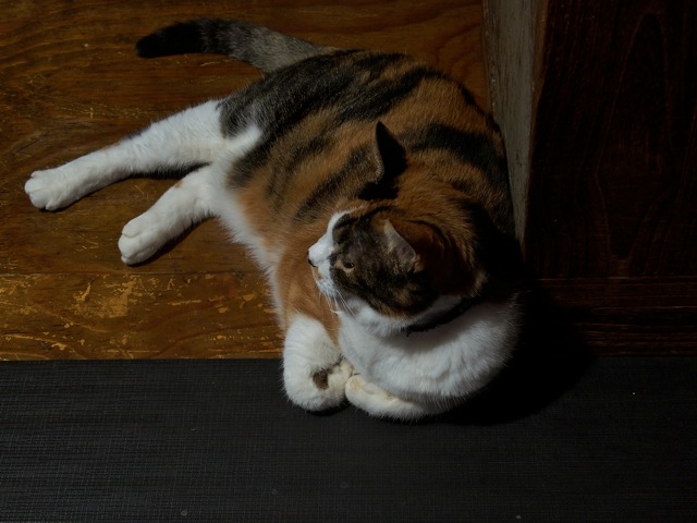 世の中にはお腹いっぱい食べられないネコもいるんだよ、な〜んて、自分が親から言われたことを猫に言ってみる。
