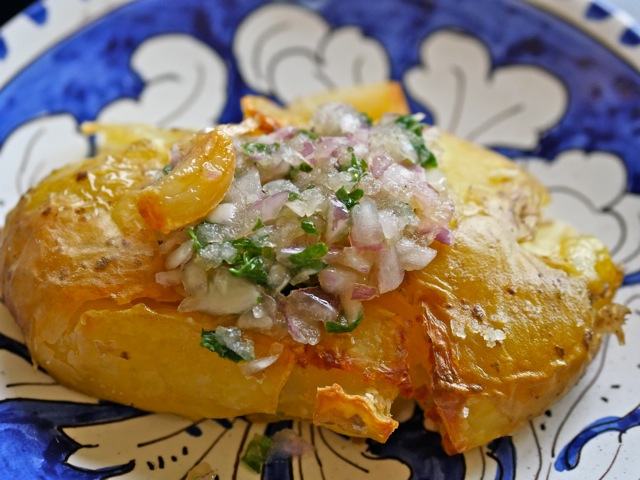 それに油を掛けてオーブンでじっくり焼いたもの。 エッジのカリカリが美味しい。