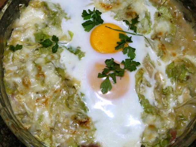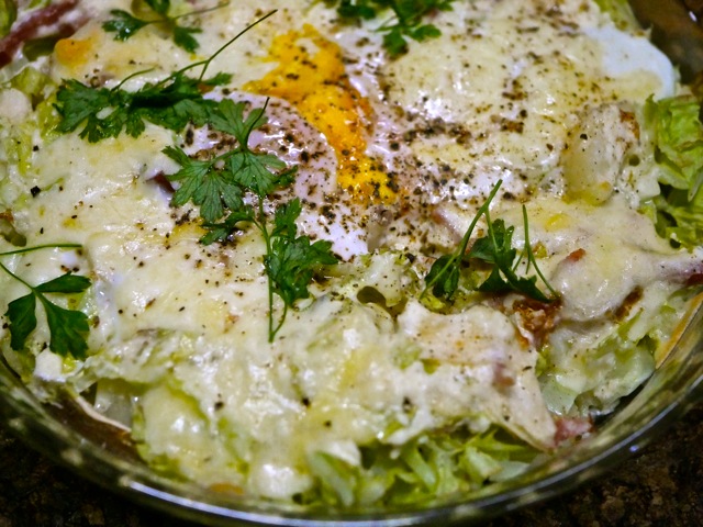 我が家で最近のヒット作、キャベツのグラタン。キャベツだけで作るんですよ。