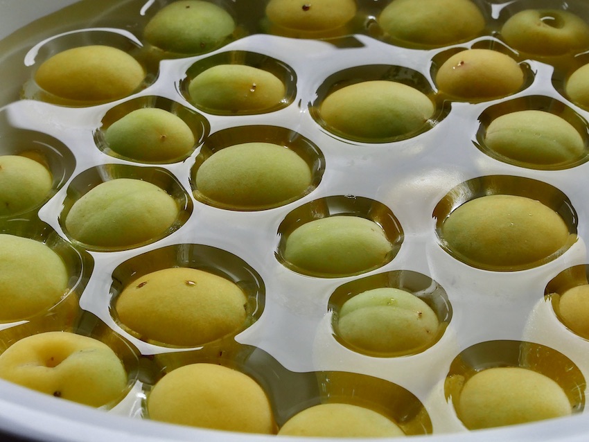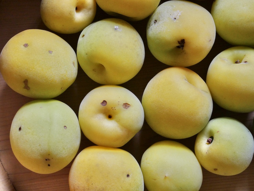 実家のウメと、このウメ、時間のズレはできたけれど、ただいま塩漬け中。