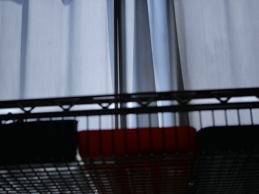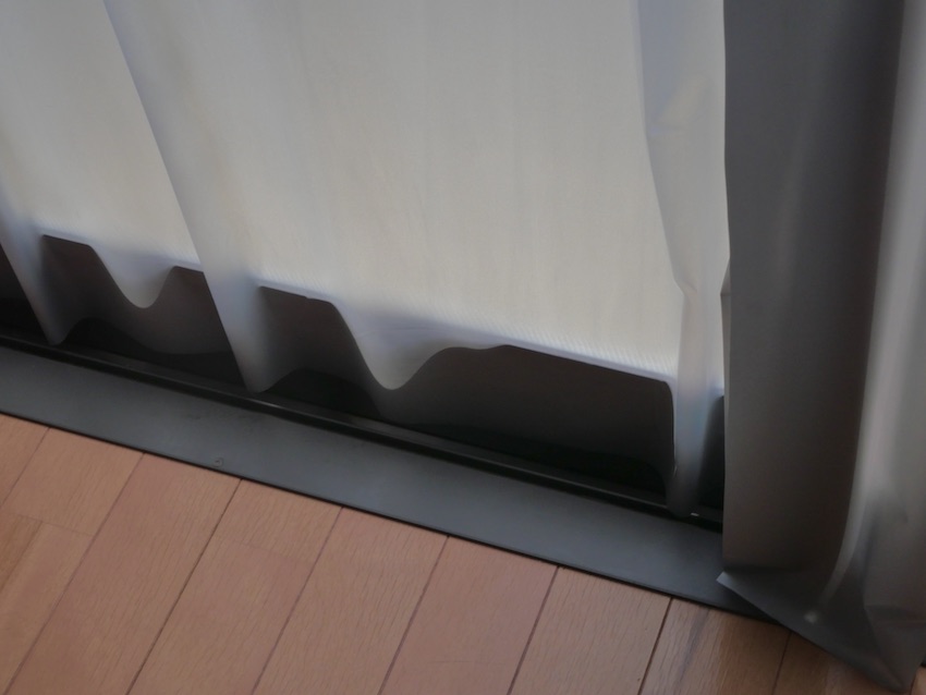 日が当たると、カーテンがガラスに吸い付けられるようです。