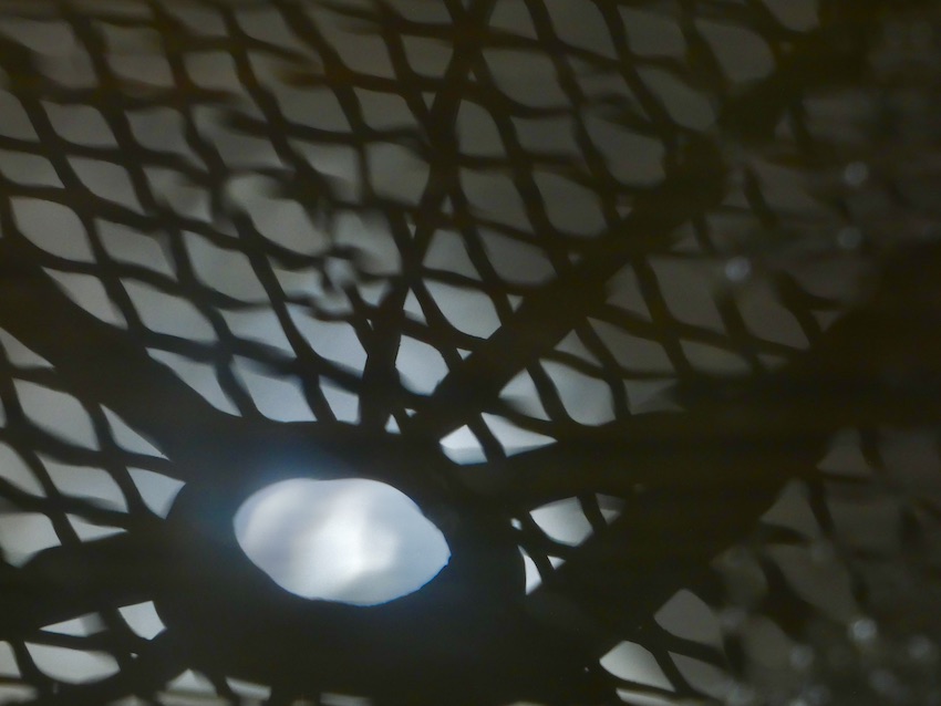 ワイヤラックのポールに日が差して出来上がった景色、一瞬の出来事